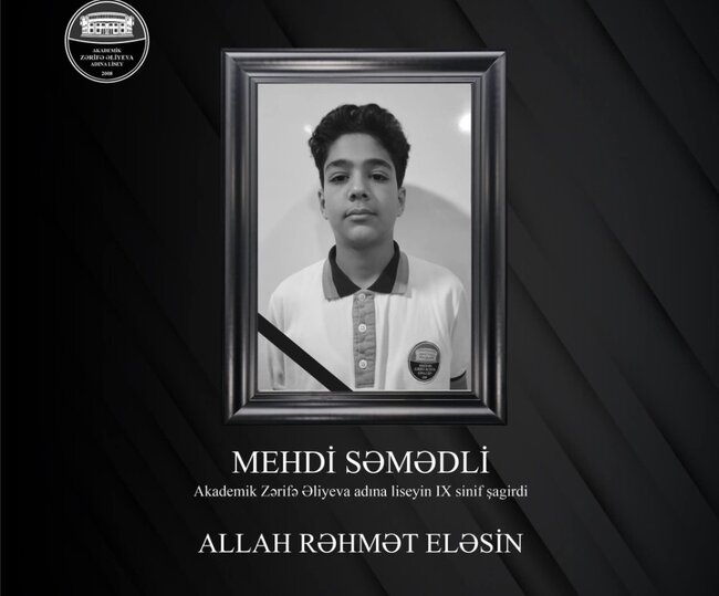Akademik Zərifə Əliyeva adına liseyin IX sinif şagirdi Mehdi Səmədli dünyasını dəyişib.