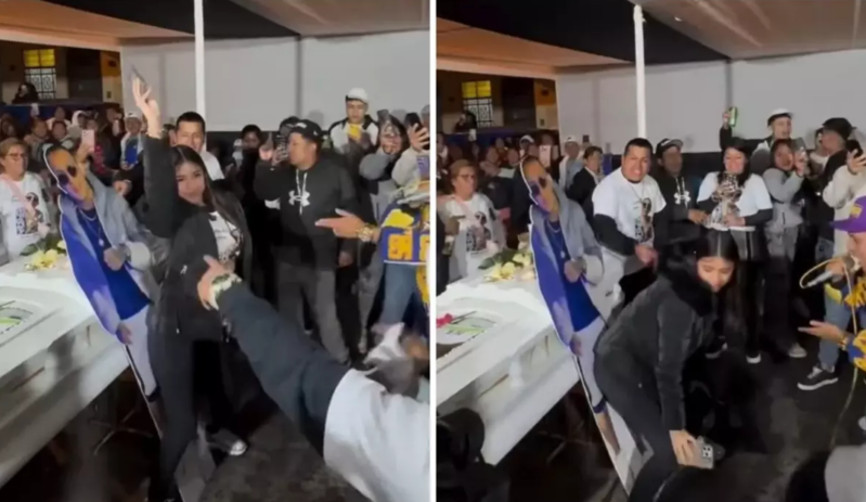 Qara yas paltarı geyinmiş qadın, reggaeton musiqisinin ritminə qapılaraq rəqs etməyə başlayıb. Daha sonra rəqsini mərhumun karton maketinə sürtünərək "twerk" hərəkətləri ilə davam etdirib. Bu qeyri-adi vida səhnəsi həm mərasim iştirakçılarını, həm də sosial media izləyicilərini təəccübləndirib.